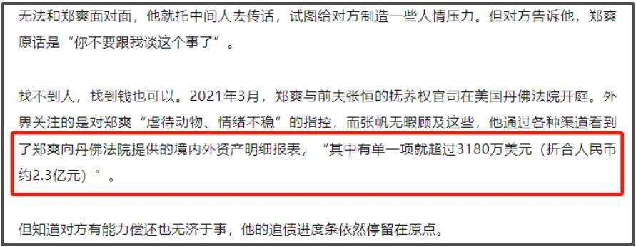 但从郑爽工作室的动态和网友偶遇的情况来看,郑爽的生活还是比较不错的,起码还有资金创业,制作AI短剧,运营账号,此前债主还曾爆料郑爽在境外有2.3亿的资产,看来当年是真没少赚呐,但一切都随着郑爽塌房成为泡影。
