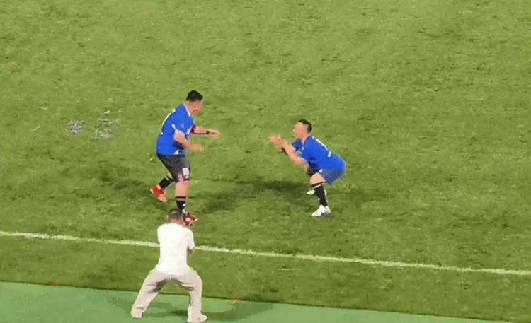 在东北的一场明星足球赛上,本来大家的关注点是赵本山的儿子赵大牛——蓝色球服、有些圆润的身材、出人意料的进球表现。但现场另一个不经意间出现的画面,却迅速在