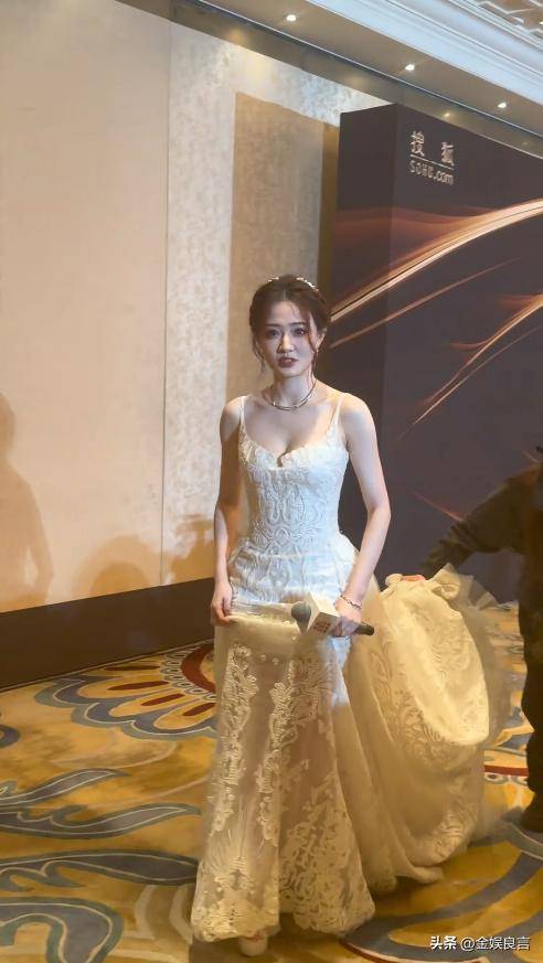 此次红毯造型简约却不简单,白色纱裙衬得她气质干净纯粹。