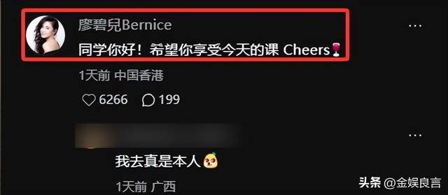 她一点架子都没有还特意在评论区回应:“同学你好!希望你享受今天的课Cheers” 。