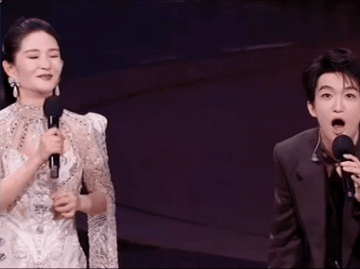 发现还没轮到自己,她又赶紧放下话筒,一边鼓掌掩饰尴尬,一边盯着提词器,确认自己接下来要说什么。