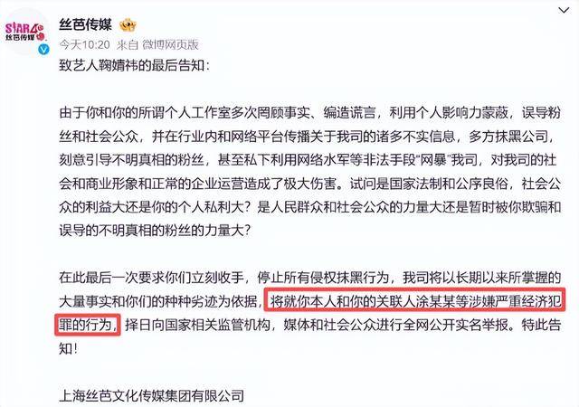 就在大家以为事情差不多就这样了的时候,丝芭突然放了个大招:说要实名举报鞠婧祎涉嫌严重经济犯罪,还要全网公开!这帽子扣得可不小,经济犯罪可不是闹着玩的。