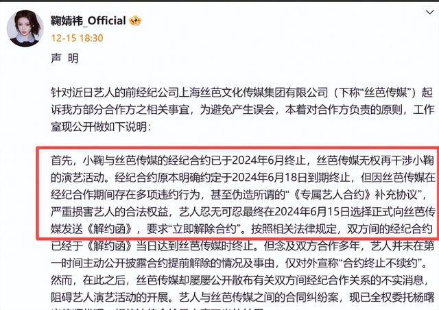 丝芭那边更绝,直接起诉鞠婧祎私自接商务活动,还索赔一大笔钱。