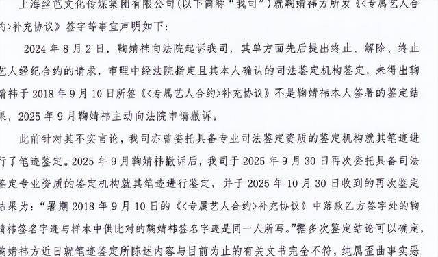 鞠婧祎工作室气得不行,直接发声明说丝芭伪造签名,还骚扰她们的合作方,这手段也太下作了。