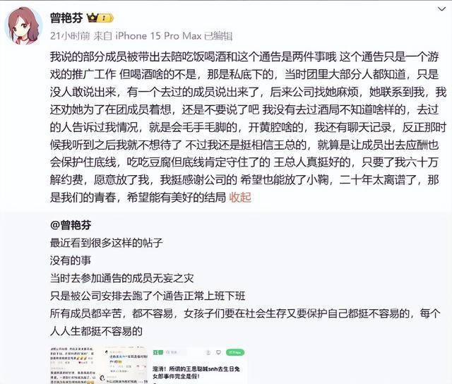 不光曾艳芬,还有好几个已经离开丝芭的前成员,虽然没明说,但字里行间都在支持鞠婧祎,看来大家对丝芭的做法都有点看不下去了。