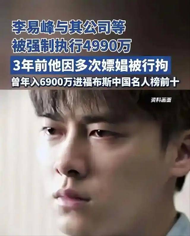 今年8月份,李易峰与其公司又被强行执行4990万。