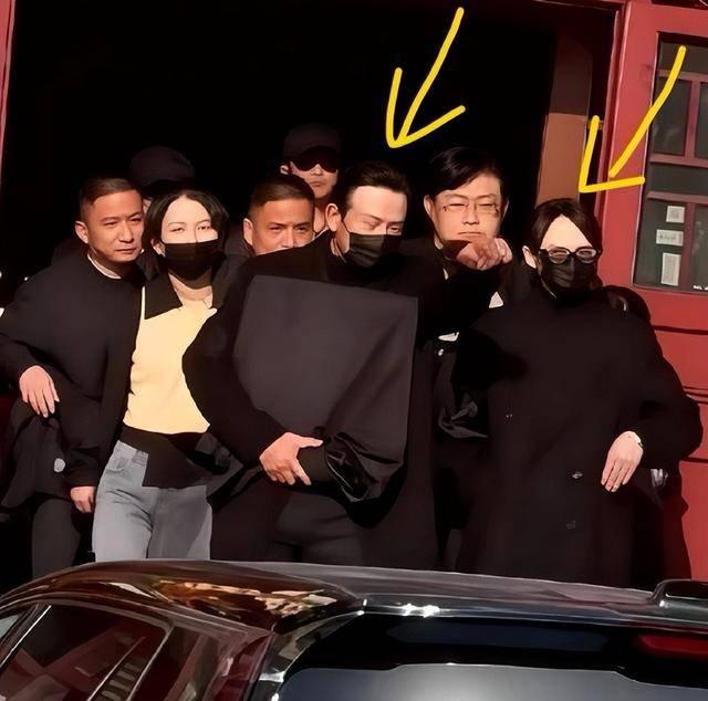 照片里他穿黑色长款羽绒服,戴着黑色针织帽和墨镜,口罩拉到下巴,可眼窝深陷,一看就是没休息好。