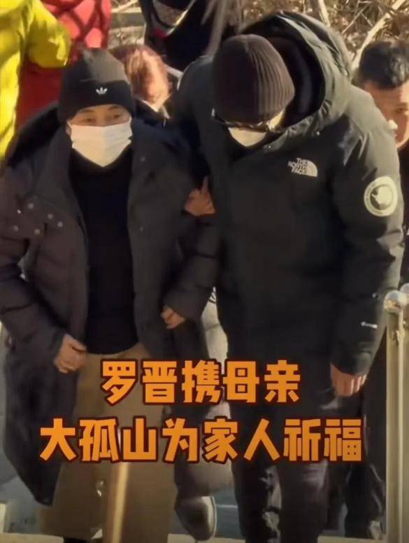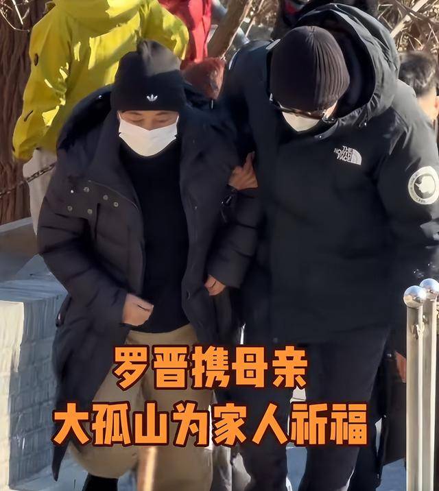 上山时罗晋一直扶着母亲,老太太走几步就要歇会儿,看起来身体不太好。