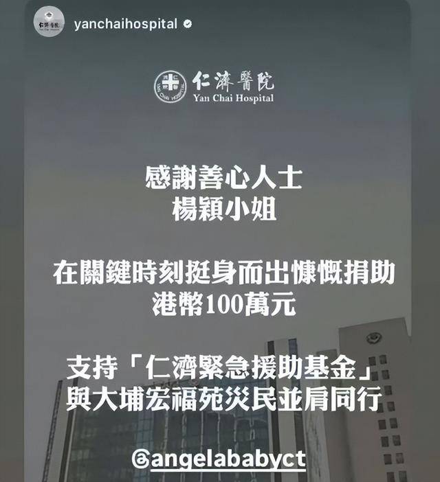 最关键的是她低调向香港大埔火灾灾区捐了100万港元,善举获得好评,被赞“公益不喧哗”。