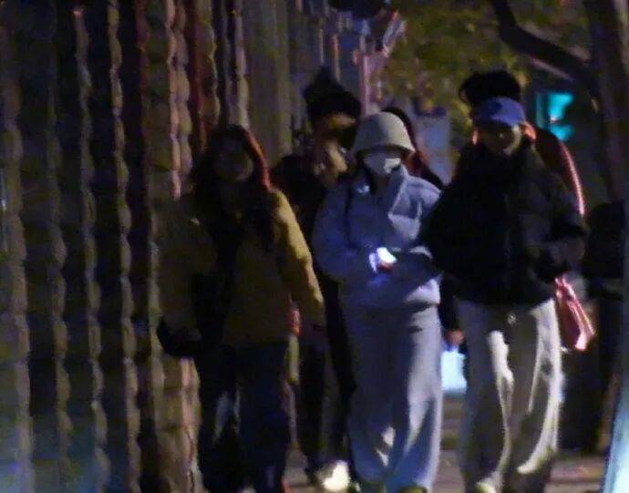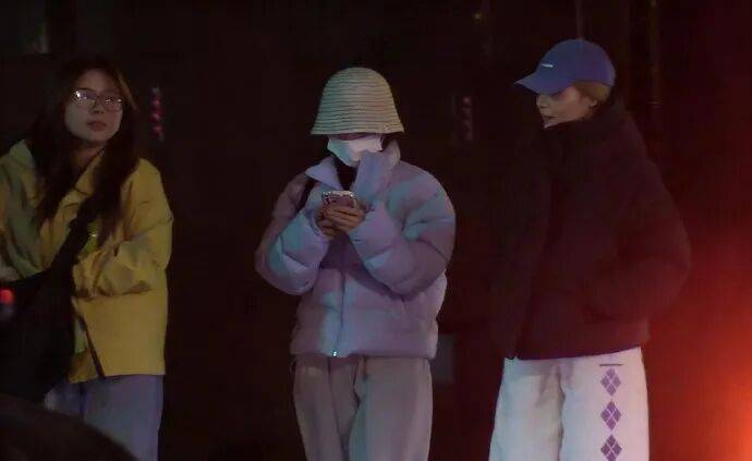 鞠婧祎身穿代言品牌蓝色羽绒服,戴渔夫帽及口罩,仅露出双眼,由一名助理陪同散步。她被拍时专注看手机,偶尔与助理低声交流,步履从容,未见慌乱。