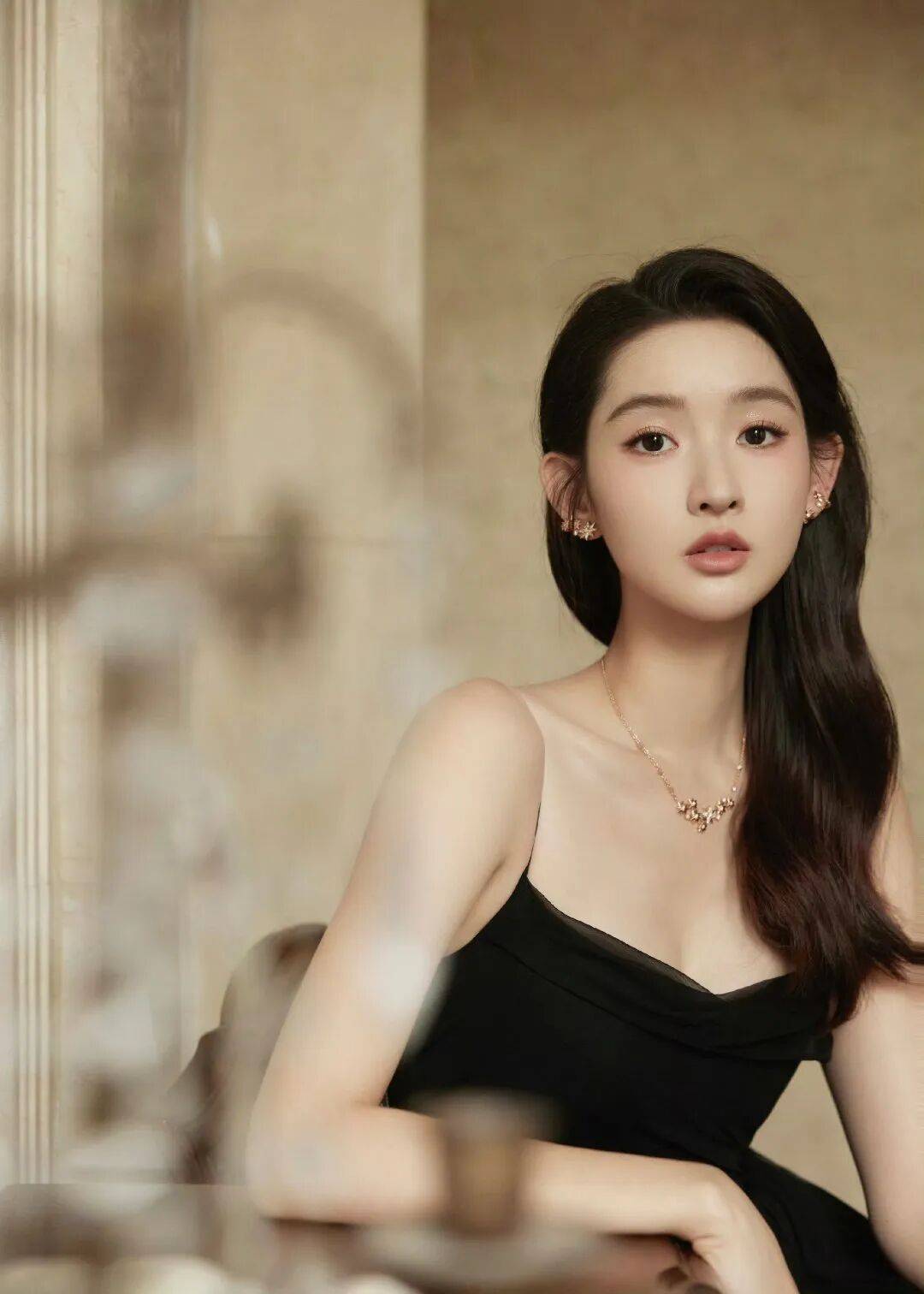 她淡雅妆容搭配盘发造型,强化清冷高贵感,生图中肌肤细腻如"自带滤镜",动态举止间散发含蓄的仙韵,当真美爆了。