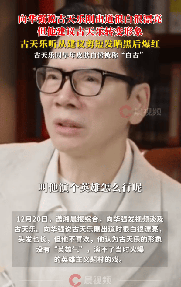 12月20日,潇湘晨报综合,向华强发视频谈及古天乐。向华强说古天乐刚出道时很白很漂亮,头发也长,但他不喜欢,他认为古天乐的形象没有“英雄气”,演不了当时火爆的英雄主义题材的戏。于是,古天乐剪了短发,又把自己晒黑,转变形象之后就爆红。