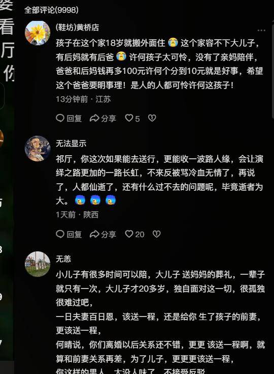 但在他确定没出席前妻追悼式之后,网友纷纷涌入他的评论区,对他进行各种指责和质问,不只是同情何晴,还可怜起了他们的儿子。