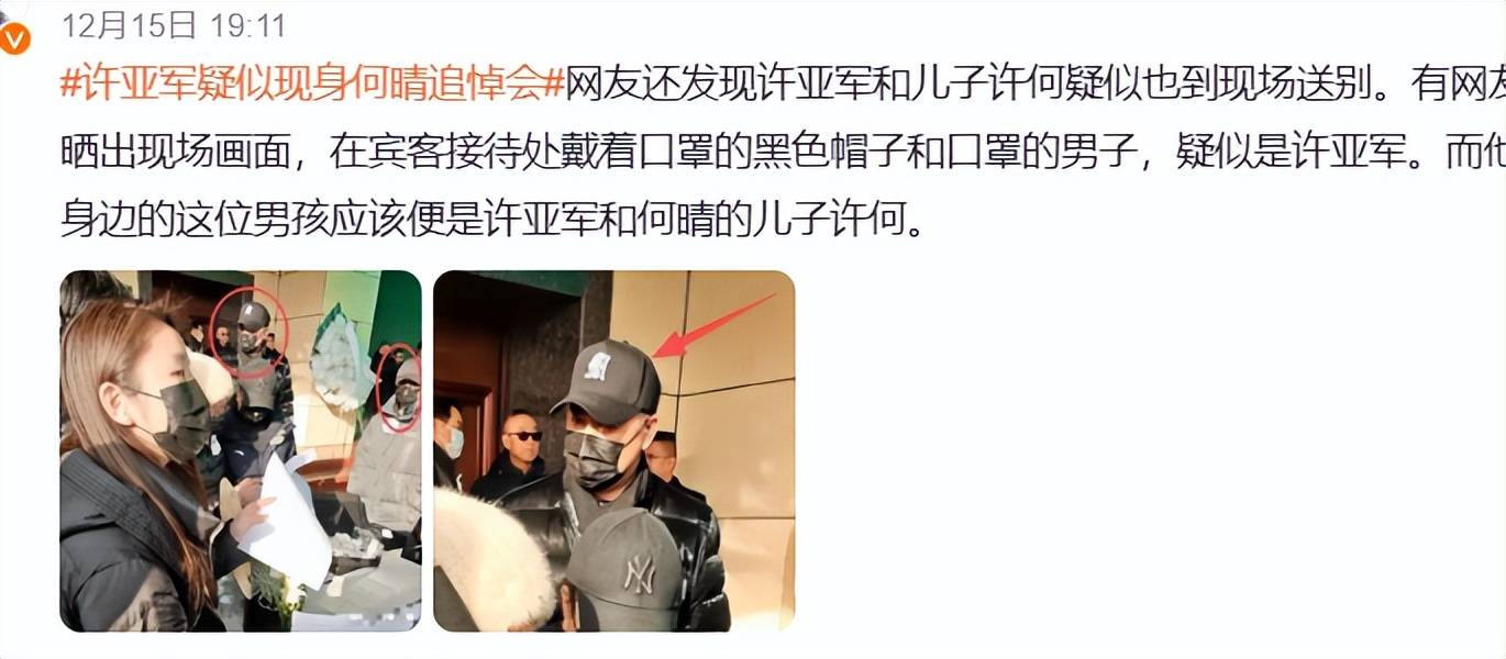 在之前何晴的追悼式上,有媒体拍到一个头戴黑帽、佩戴黑色口罩的中年男子疑似是他,身边的年轻人也疑似是他的儿子许何。