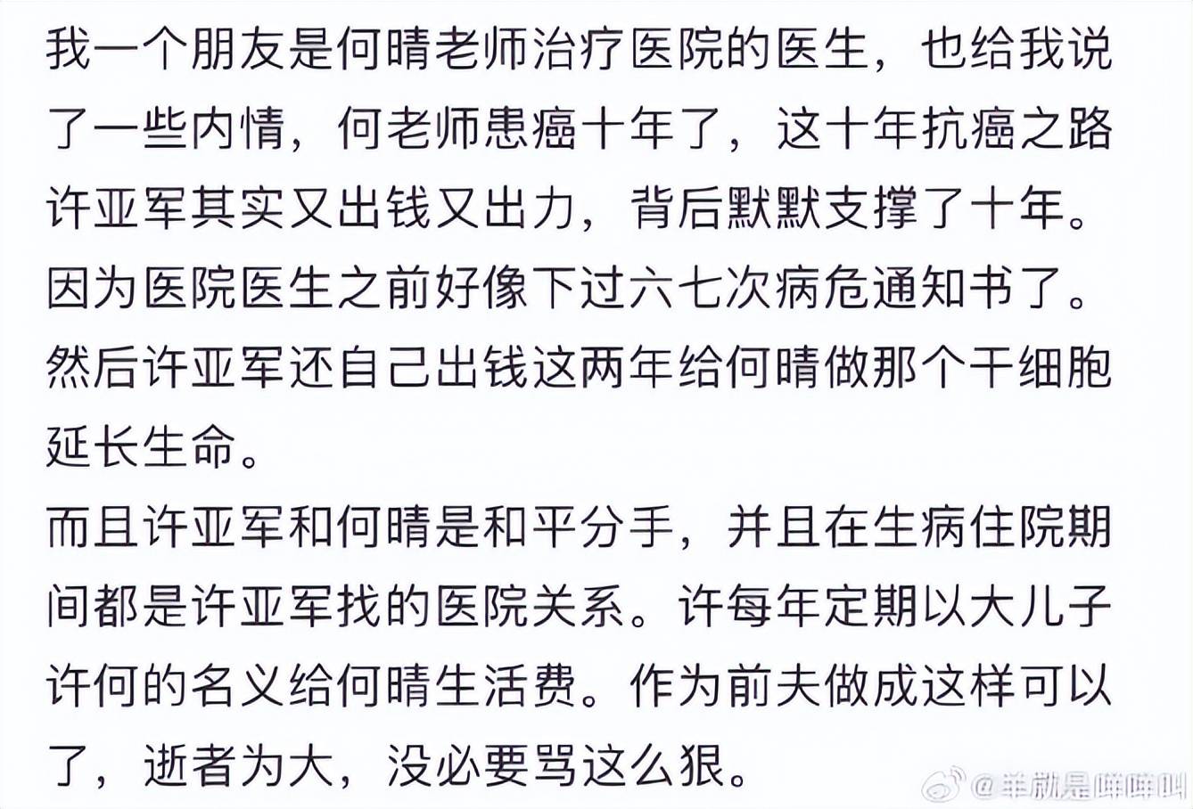 有网友在社交平台爆料许亚军有苦衷,透露他这些年为何晴付出了很多,说得有模有样。