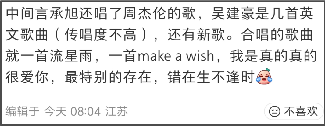 ——就像吴建豪,他就唱了不少英文歌,挺难引发观众共鸣的。