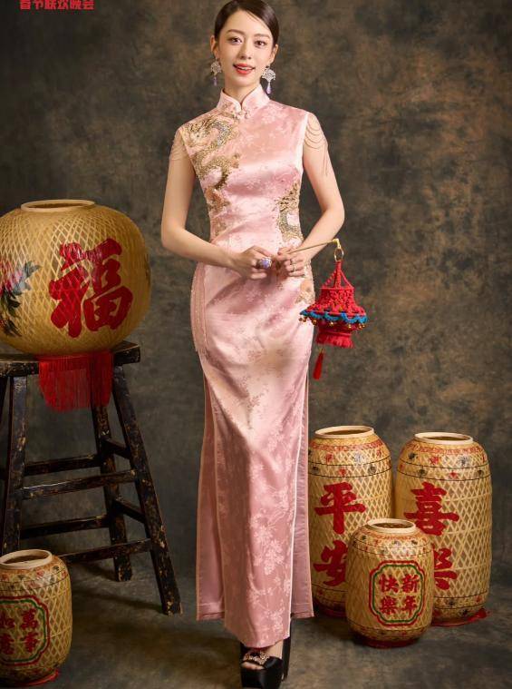 一开始吉娜走的是清纯中国风路线,经常穿旗袍亮相,有一次在节目里穿红色旗袍弹钢琴,被网友称为“从画里走出来的古典美人”。