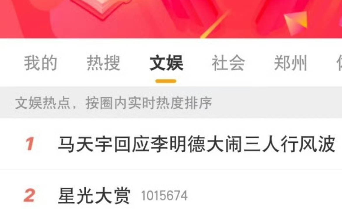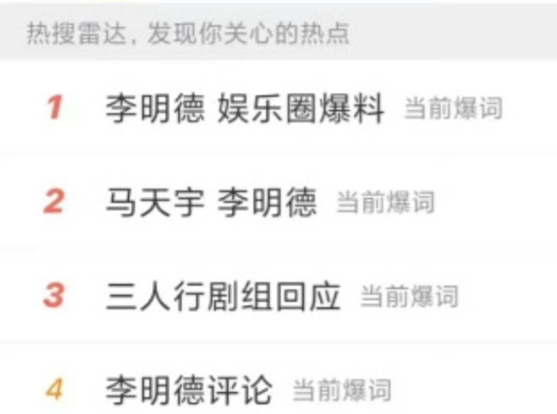 这场年末热搜乌龙的导火索,纯属马天宇的“无心之谈”。12月20日,距离星光大赏没几天,马天宇在播客里首次公开回应年初的《三人行》剧组风波,直言自己向来“守时敬业”,把那场闹得沸沸扬扬的纠纷称作“人生中的一劫”。本是时隔近一年的坦然复盘,没想到话题#马天宇回应李明德大闹三人行风波#直接冲上文娱热搜榜首,3390万的阅读量一路狂飙,硬生生把星光大赏的红毯预热、明星造型等话题挤到了后面。更戏剧性的是,这次热搜跟李明德本人半毛钱关系都没有——他早在2025年7月因故意毁坏财物罪被判6个月,8月刑满释放后就彻底退圈了,纯属躺着被旧闻“带飞”,上演了一出“人不在圈,圈仍有他的传说”。