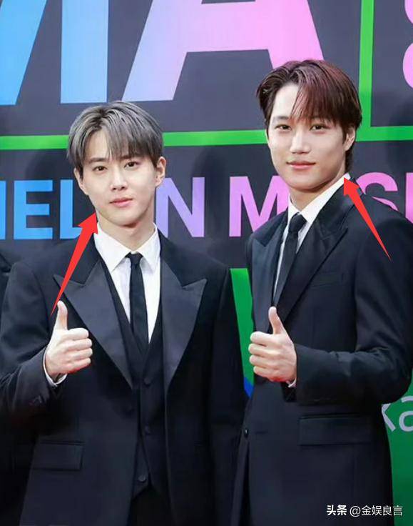 可在无滤镜的红毯上,这些缺点被无限放大,以前觉得EXO是神颜团,现在看来都是精修的功劳。