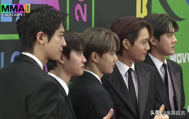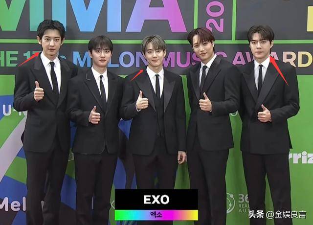 再看EXO,作为韩流前辈,他们集体亮相本应该是“爷青回”名场面,可没想到他们直接把红毯变成了“土味现场”。
