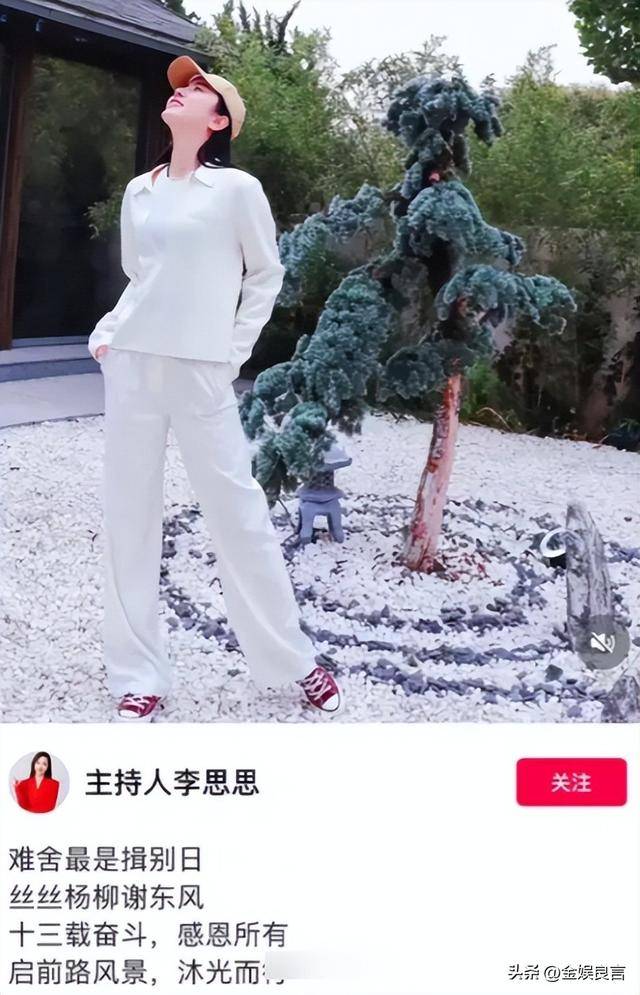 2023年10月9日,李思思在社交平台发文:“十三载奋斗,感恩所有,启前路风景,沐光而行。”