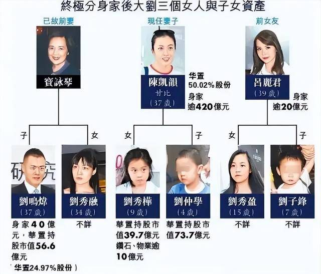 从港媒此前曝光的刘銮雄财产分配表中,不难看出,刘銮雄和原配宝咏琴所生的儿子刘鸣炜是大刘最为看重的一个,另外便是甘比以及她的子女,而吕丽君和一对子女显然要“失宠”得多。