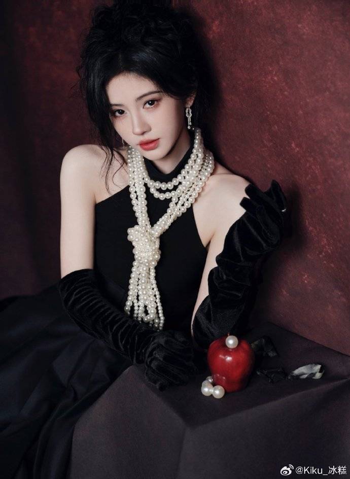 鞠婧祎身着黑色露肩丝绒长裙,搭配法国珠宝品牌FRED斐登定制的多层珍珠项链,她俏脸甜美清纯,秀眸明亮,烈焰红唇,露出白皙的香肩,肌肤娇嫩如雪,曼妙的身材曲线,美得让人窒息!