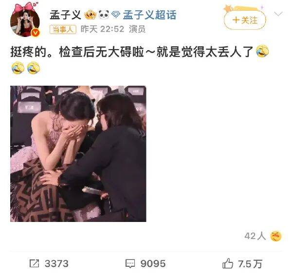 有网友质疑孟子义连续两年摔倒的巧合性,认为“长裙高跟鞋虽是客观原因,但女明星理应有经验规避”。但更多声音指出,她膝盖红肿、下场后反复检查伤势的细节显示并非表演。