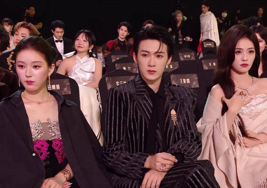 张凌赫上台领奖,白鹿直接低头玩起手机,似乎也很怕导播乱切。