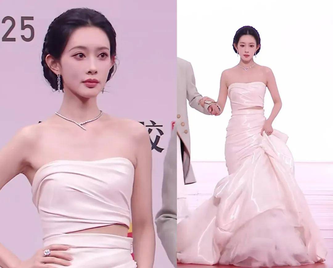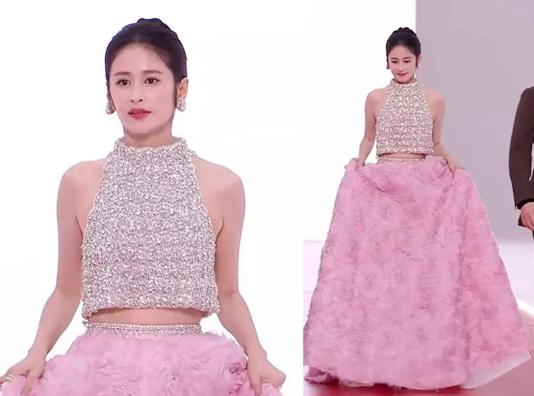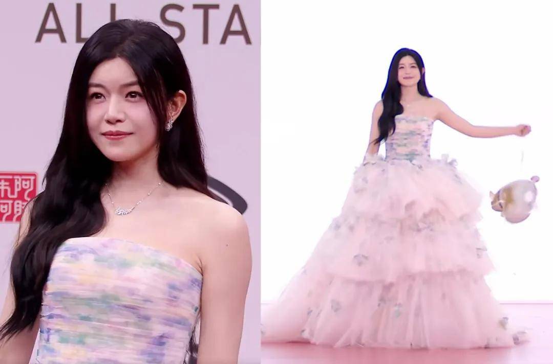 许久没在大型活动中露脸的赵露思,正式回归的造型居然有点像伴娘,她穿了一条粉色珠光长裙,加上手上的彩色花束,要是站在宋茜或者毛晓彤身旁就更像伴娘了。