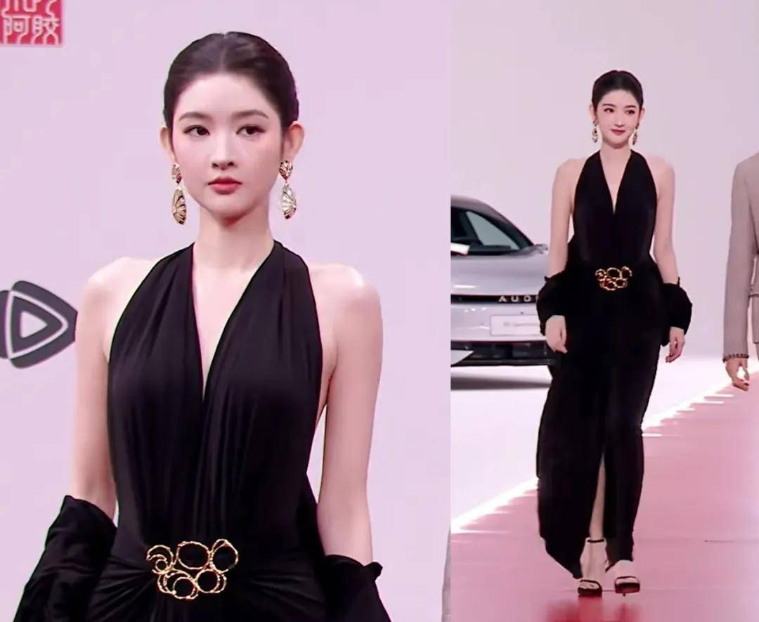 王玉雯最近几次的红毯造型都让人惊艳,这次她穿了一条黑色挂脖长裙,搭配利落的盘发和瞩目的耳饰,完全就是都市剧里刚在晚宴亮相就能吸引众人目光的千金小姐。