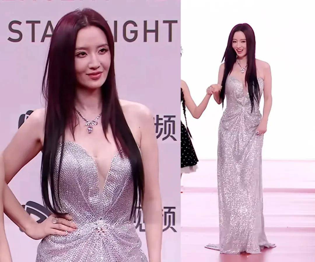 张萌以往的红毯,都说不上很好看,说直白一点的话就是风格俗了一点,这次她虽然还是选择了能秀身材的礼服,但这条银色亮片深V礼服搭配长直发,好看又高级,同时使得她整个人看起来都年轻了。
