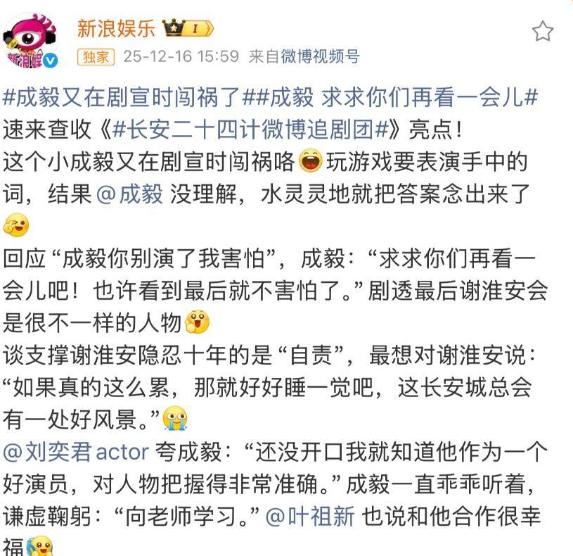 但相比起公司这边,网友最质疑的还是成毅自己,他的新剧《长安二十四计》扑街严重,接的是央视的高盘,收视却跌破1,扑到了粉丝都很难挽尊的地步。