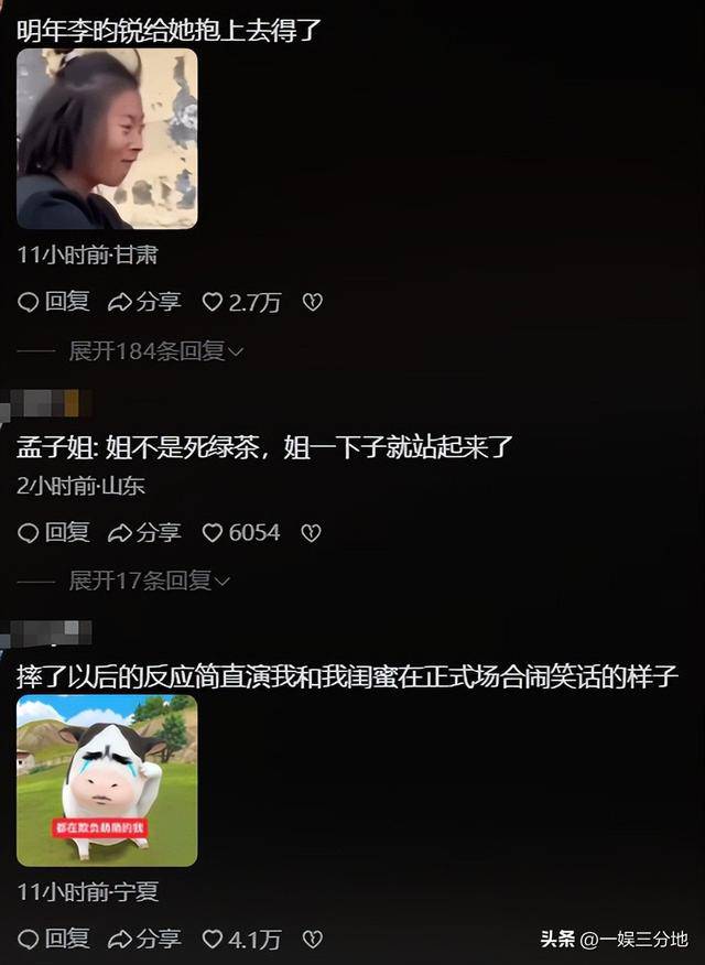 因为孟子义每年一摔,看热闹不嫌事大的网友也是提议:“明年不如让李昀锐直接抱她上台吧!”