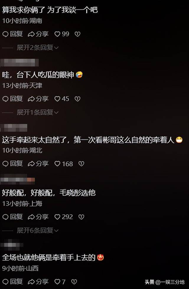 能在这种大场面都自然展示,看得出大家的感情杠杠的。