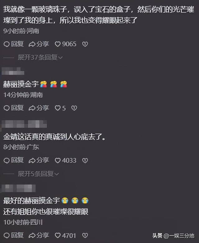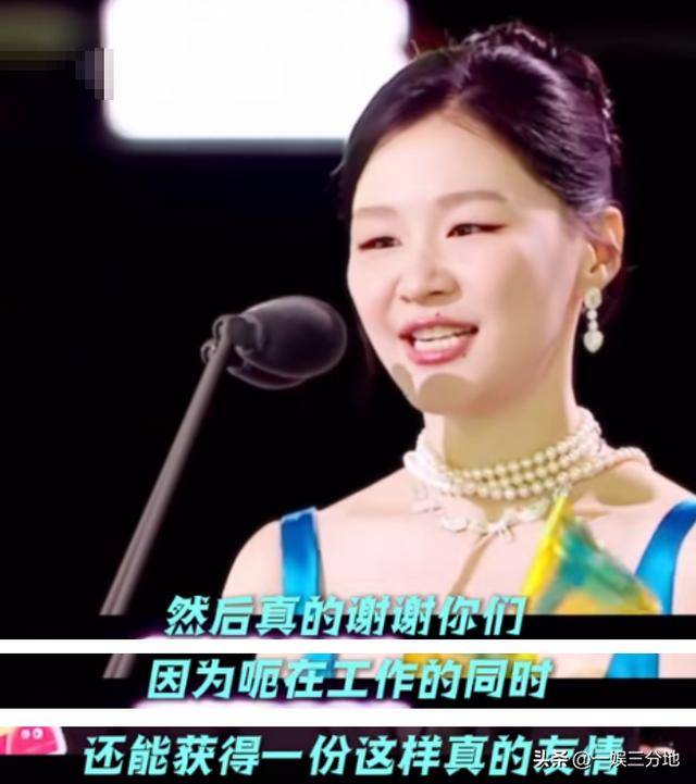 她在台上的发言也是无比真诚,说自己误入了宝石盒子,得到了他们的光芒折射,才变得耀眼了起来。