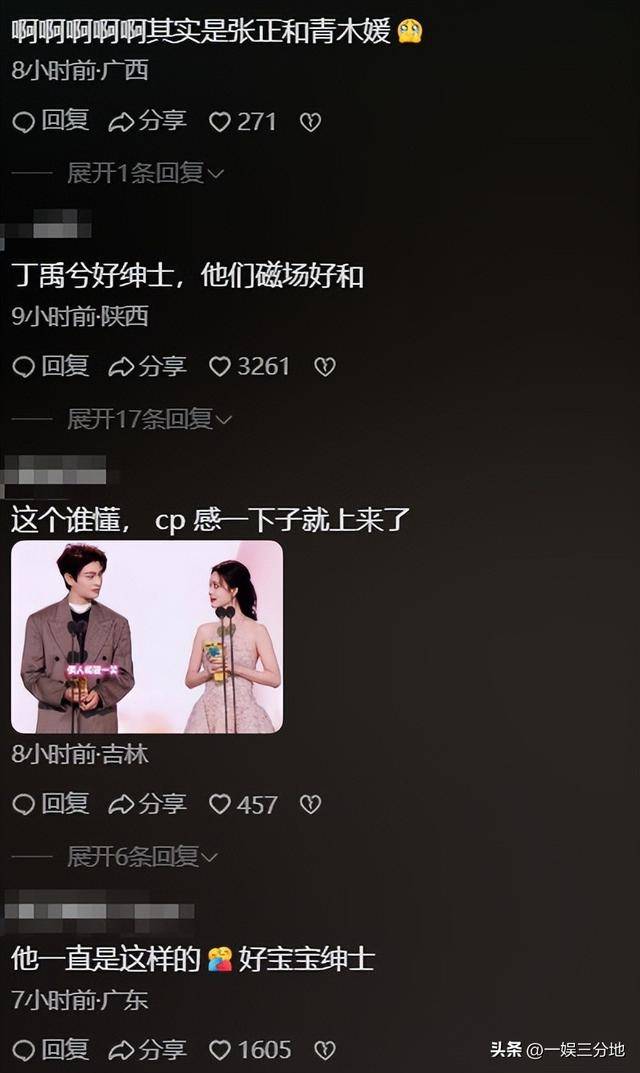 除了关照身边的人,丁禹兮一晚上也是净忙着磕CP了。