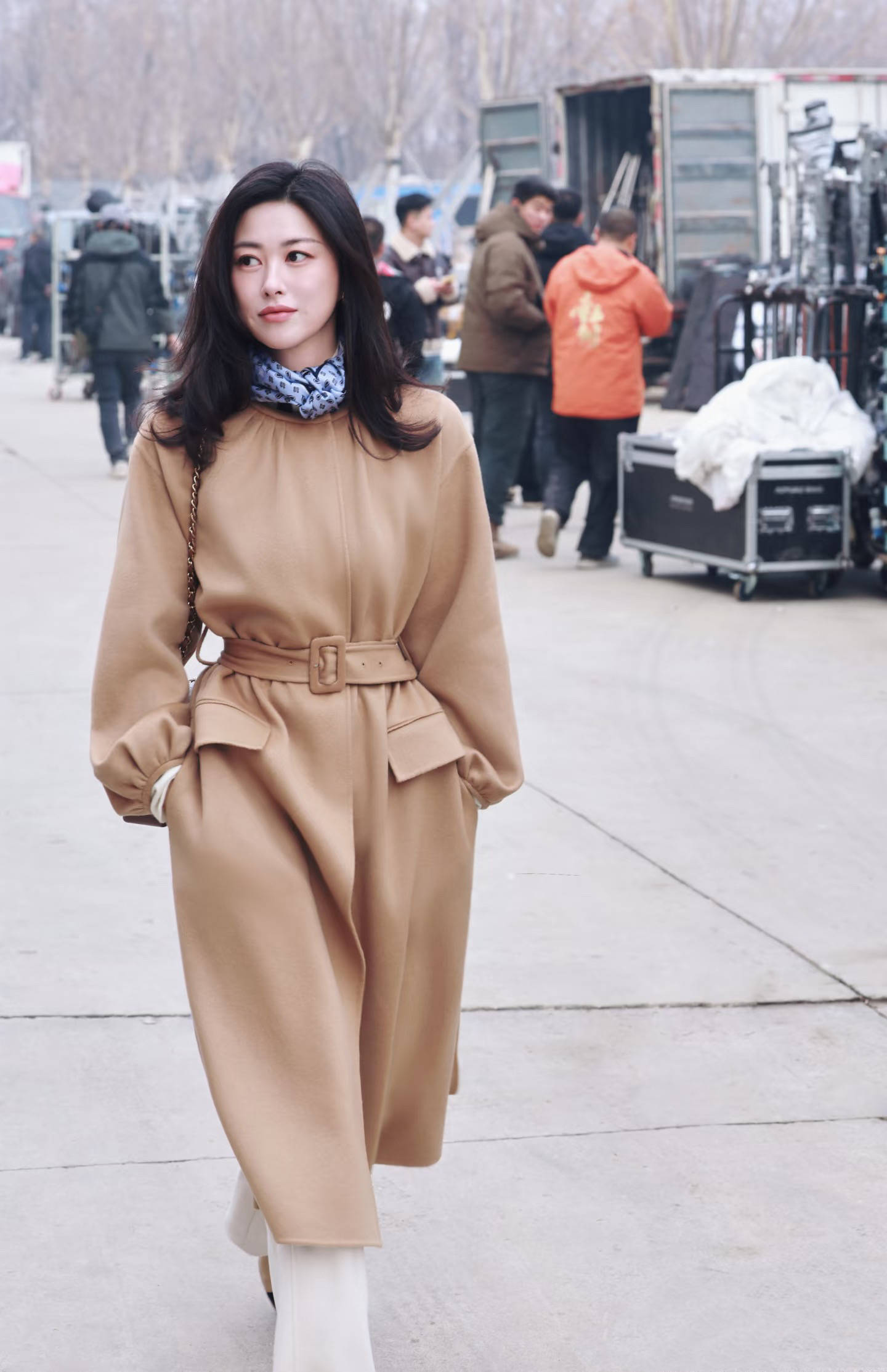 朱珠这一身,特别有成熟女性的美丽。她的大衣设计很有特点,宽松版型配了腰带点缀,就不那么松弛,更彰显气质。