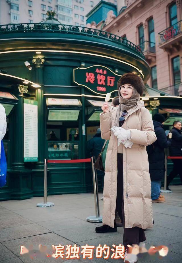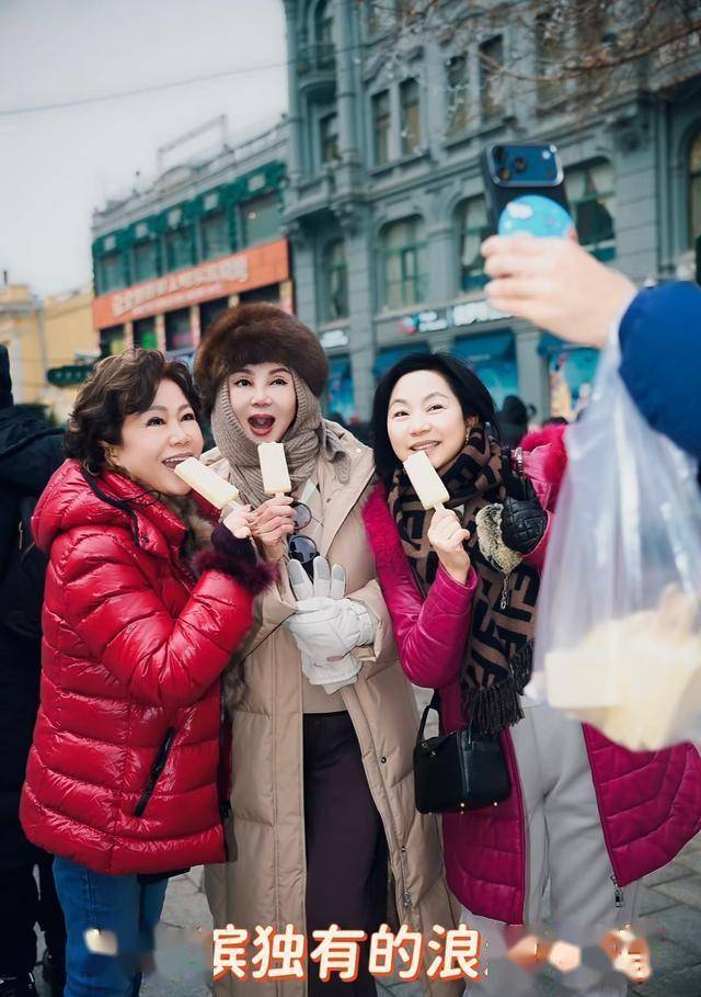 虽然天气寒冷,但他们还吃了马迭尔冰棍,品尝了烟囱面包,那活力简直跟年轻人有的一比。