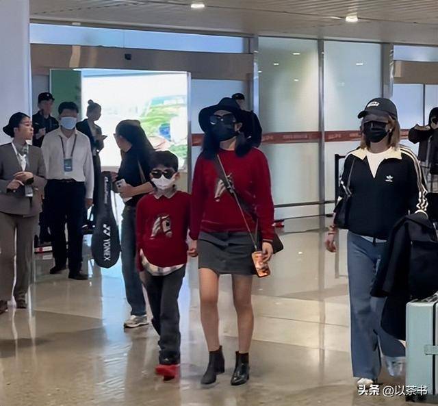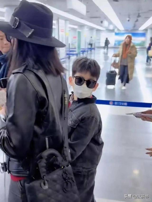 母子俩穿着低调又时尚的黑色亲子装,虽然都戴着口罩,但那份与生俱来的星范儿根本藏不住。
