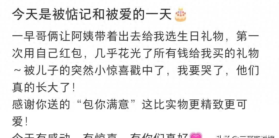 一家四口的日常就这么简单却温暖。儿子们用钱买爱,老公用手作表心意,刘云生日没有派对,但有三个男人的真心。这样的礼物比物质更重要,可能就是细水长流的爱情吧。
