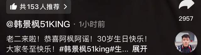 从其分享的画面中可以看出差别,她丝毫没有将自己怀孕的消息胜过老公生日这一喜讯来公布,但韩景枫却迫不及待。