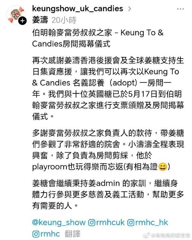 成名之后,姜涛还用自己的方式回馈陪伴他长大的麦当劳。他参与义工活动,积极做慈善,还带动粉丝一起帮助有需要的人。