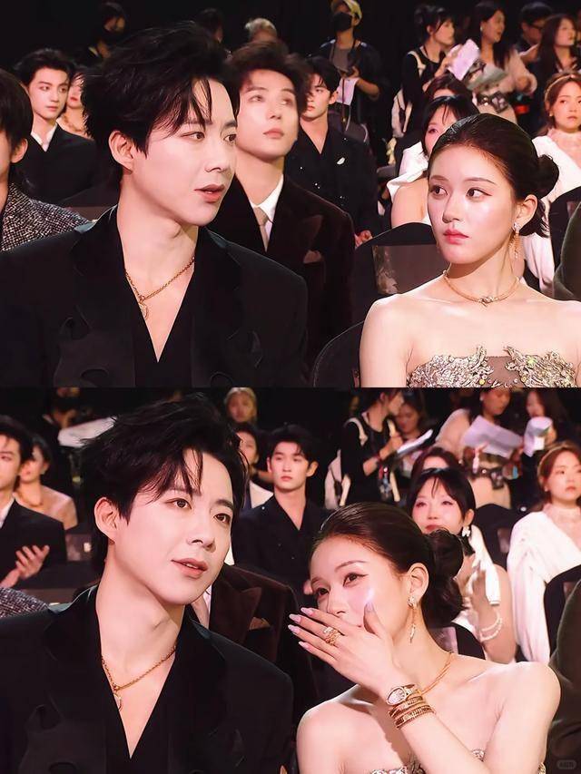 落座之后,她与檀健次低头耳语,颜值双绝的两人,立马让人脑补一出民国剧。