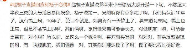赵樱子和杨子这场“深夜连麦澄清”,越看越像精心编排的流量大戏,12月21日凌晨,赵樱子用小号开播,弹幕就刷起“你和杨子是不是有事”,话音刚落,杨子就直接空降镜头前,张口就是否认:“认识十年没搞上,我们男未婚女未嫁就算搞上也正常,但不会搞上的”说着还搂着赵樱子肩膀调侃“我们做兄弟更长久昂”。