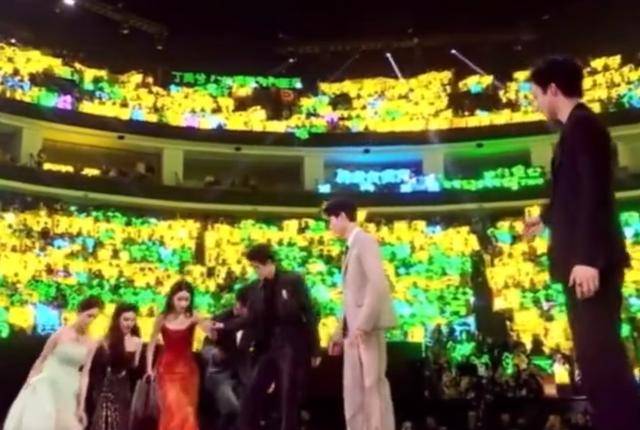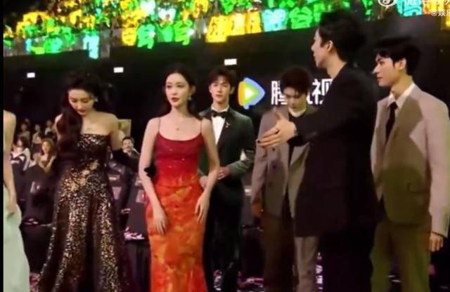 这一队人马硬是在台下谦让了好几次,最终刘宇宁才“硬着头皮”率先走上了舞台。