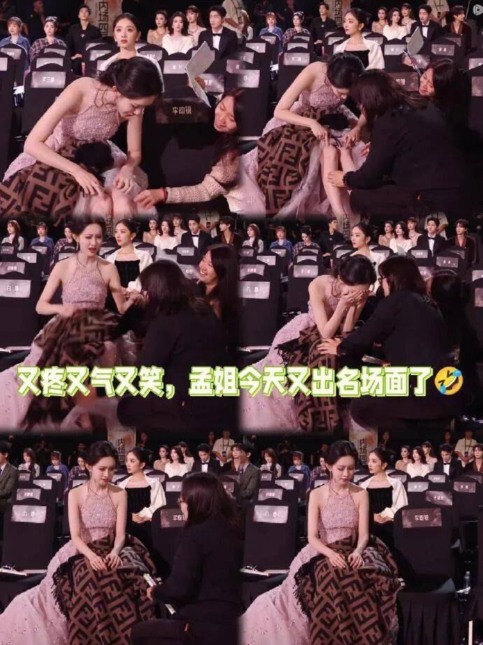 在2025年12月21日的腾讯星光大赏颁奖礼上,孟子义作为《尚公主》剧组代表登台领取“最受期待剧集奖”时,因10厘米高跟鞋踩到三米长的鎏金鱼尾裙摆失衡摔倒,双膝跪地