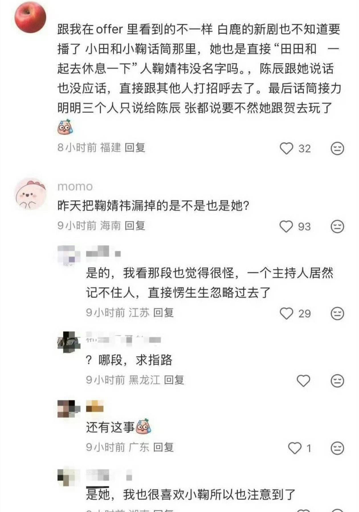有网友调侃道:"这波操作,比念错名字还离谱。"也有人表示:"如果是第一次主持紧张,完全可以理解,但直接不介绍,这已经不是紧张能解释的了。"看来,这次"失误"不仅让庞铮的专业能力受到质疑,更让观众对她的职业态度产生了怀疑。