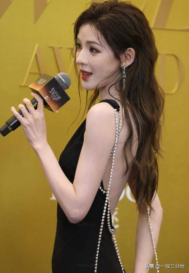 一身黑色吊带长裙,后面还是大露背,这一侧身看着整个人薄的像纸一样。