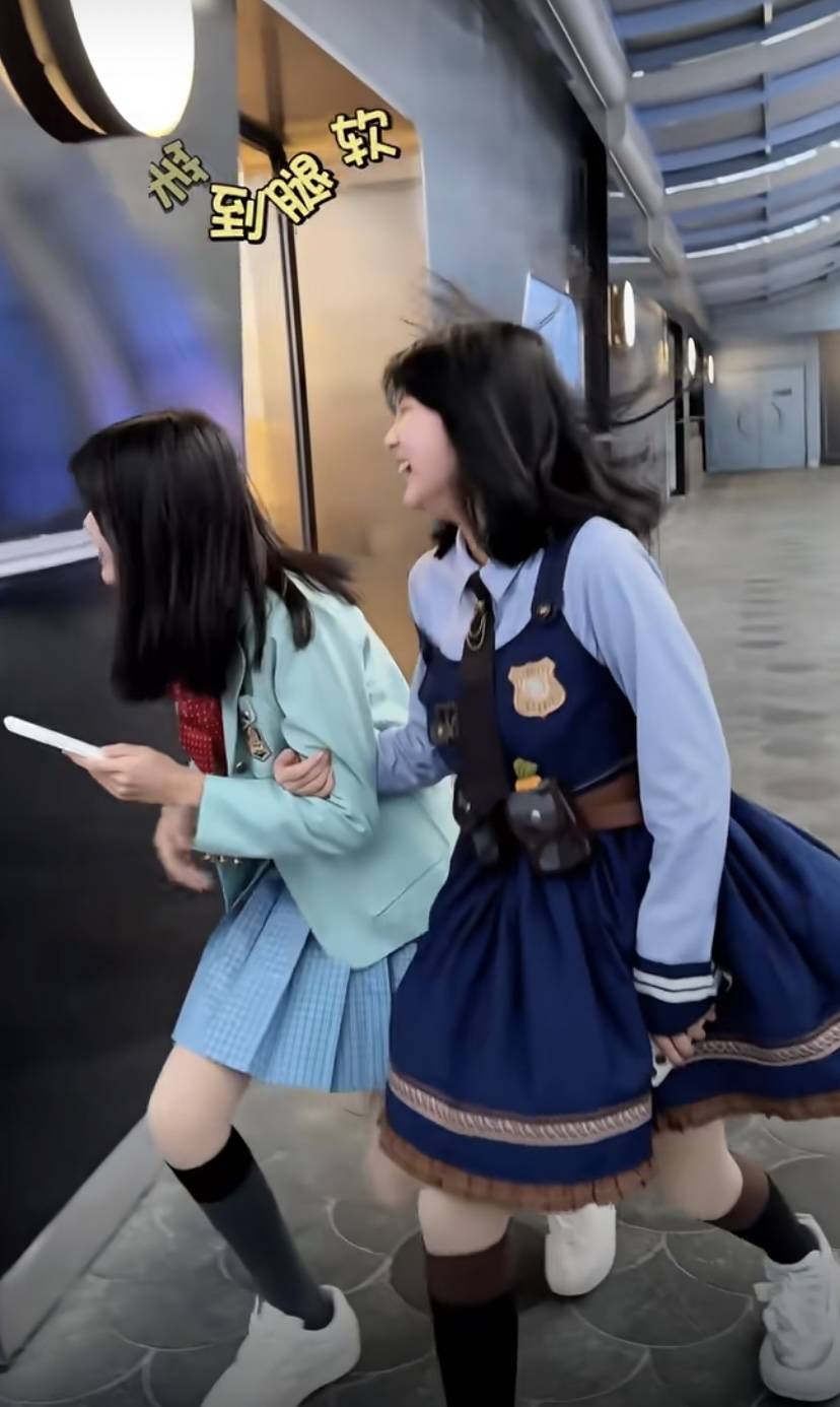 姐妹俩玩得太开心了,那种笑到腿软的感觉谁懂啊。